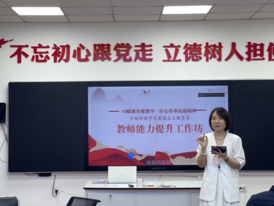 为深化爱国主义教育,提升教师智慧教学能力,9月2日,齐越传媒学院以“AI赋能传媒教学·匠心传承抗战精神”为主题启动爱国主义教育月教师能力提升工作坊。工作坊共开设4个主题活动,第一期活动聚焦信息化智慧教学。邀请学习通高级培训师刘静主讲超星学习通“一平三端”智慧教学系统在线课程基础平台建设。齐越传媒学院副院长郭晓月主持,全体教师参加。