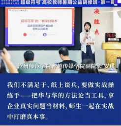 7月25日上午,安琪作为2024年“华与华”教育部产学合作协同育人项目的优秀教师代表以《超级符号的“教学封装术”——品牌管理课程产教融合创新实践探索》为题,为参会老师们分享我校广告学专业产教融合经验。安琪以《品牌管理》的课程教学和产教融合痛点为探究起点,汇报了课程团队通过课程内容重构、课程资源建设、教学创新改革、项目实战实施,探究出“CRTP产教融合四维破局路径”,总结了课程建设的独特做法及成效。汇报得到了来自全国与会高校教师的高度认可,充分展示了沧州师范学院在产教融合方面的积极探索和丰硕成果。