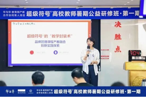 7月24至25日,齐越传媒学院副院长安琪,教师于园园、沙莎、刘忻怡受邀赴上海参加华与华·教育部产教合作协同育人项目“第一期超级符号高校教师暑期公益研修班”,学习交流华与华超级符号和品牌三角形理论及其在专业教学中的运用经验。安琪作为特别受邀嘉宾做广告学专业《品牌管理》课程产教融合经验分享。